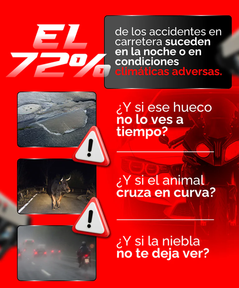 Proyectando un haz luz más profundo, directo y concentrado. Excelente para caminos oscuros, terrenos off-road o zonas rurales donde anticipar obstáculos es crucial.