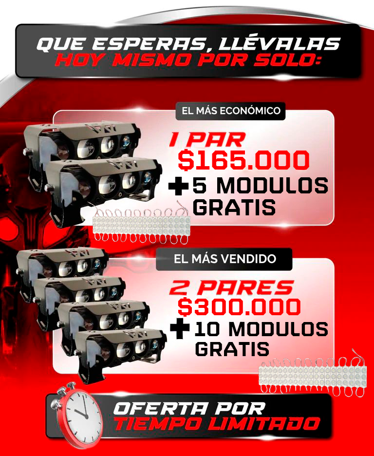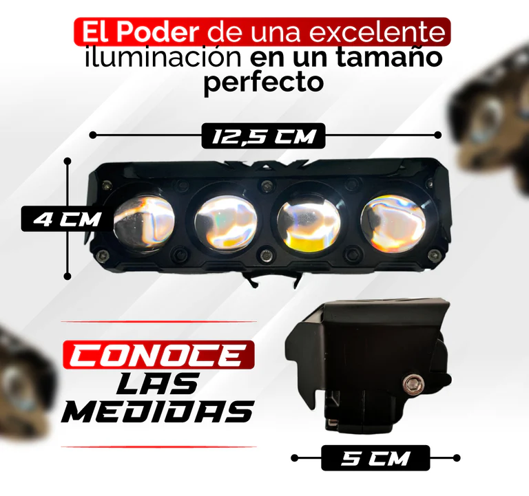 Compatible con vehiculos para altas y bajas, incluye un antinieblas y strober.