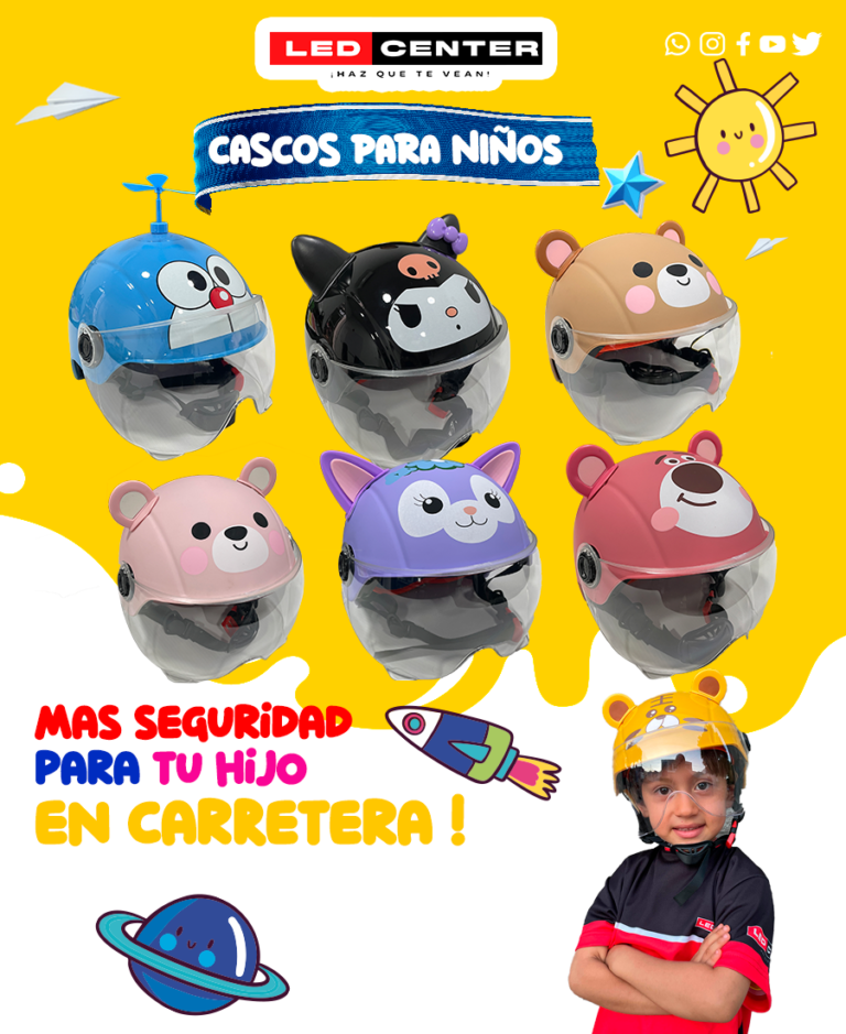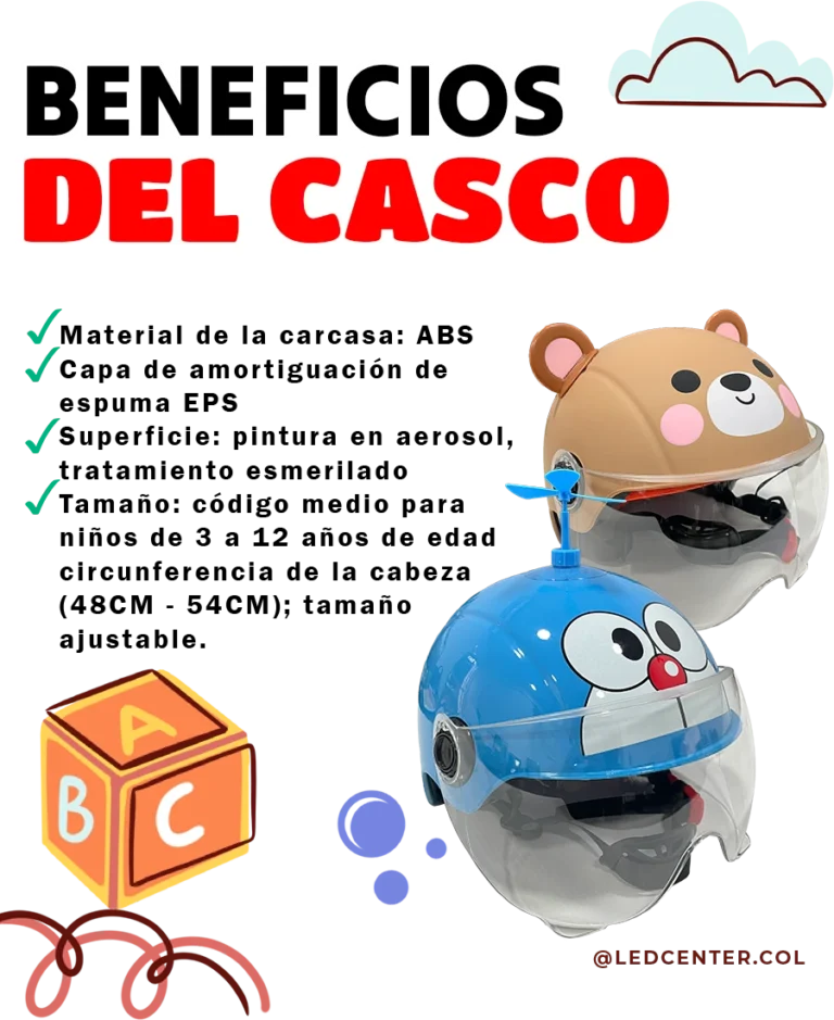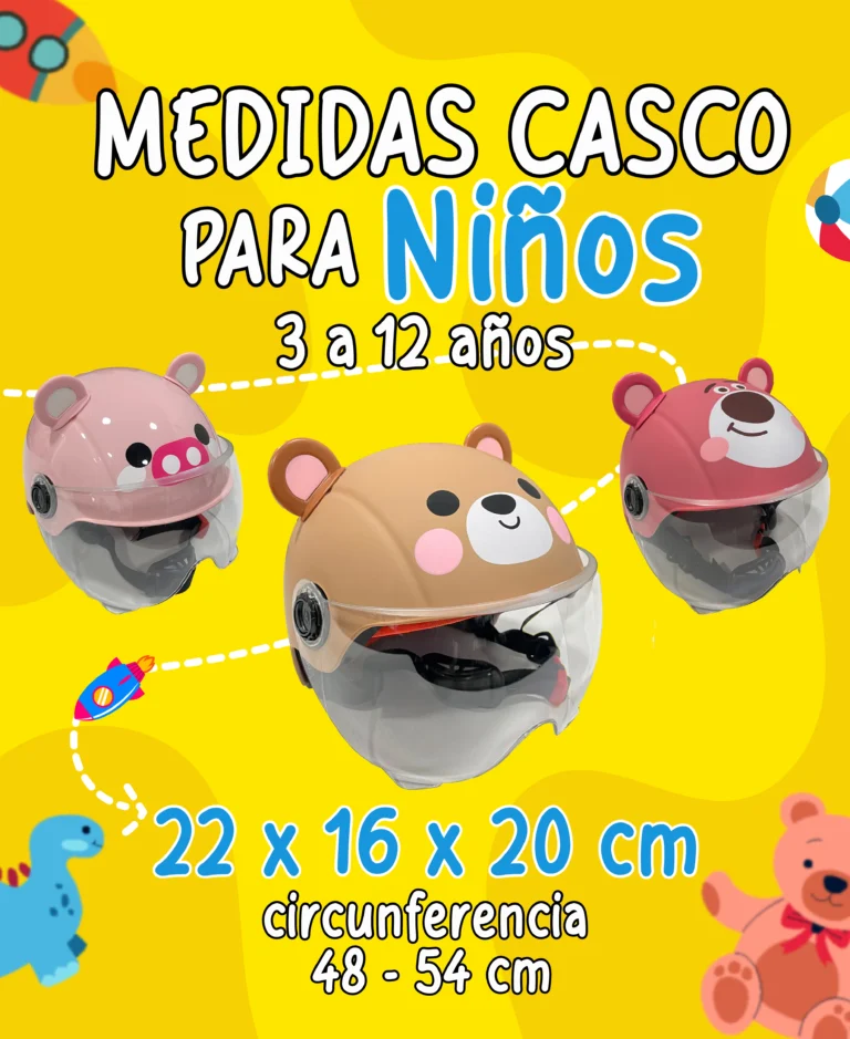 El casco está diseñado para niños de 3 a 12 años, con tallas ajustables que se adaptan perfectamente a diferentes medidas de cabeza.